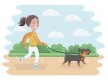 : She is walking her dog
