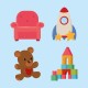 : SILLON, COHETE, OSO, CASTILLO